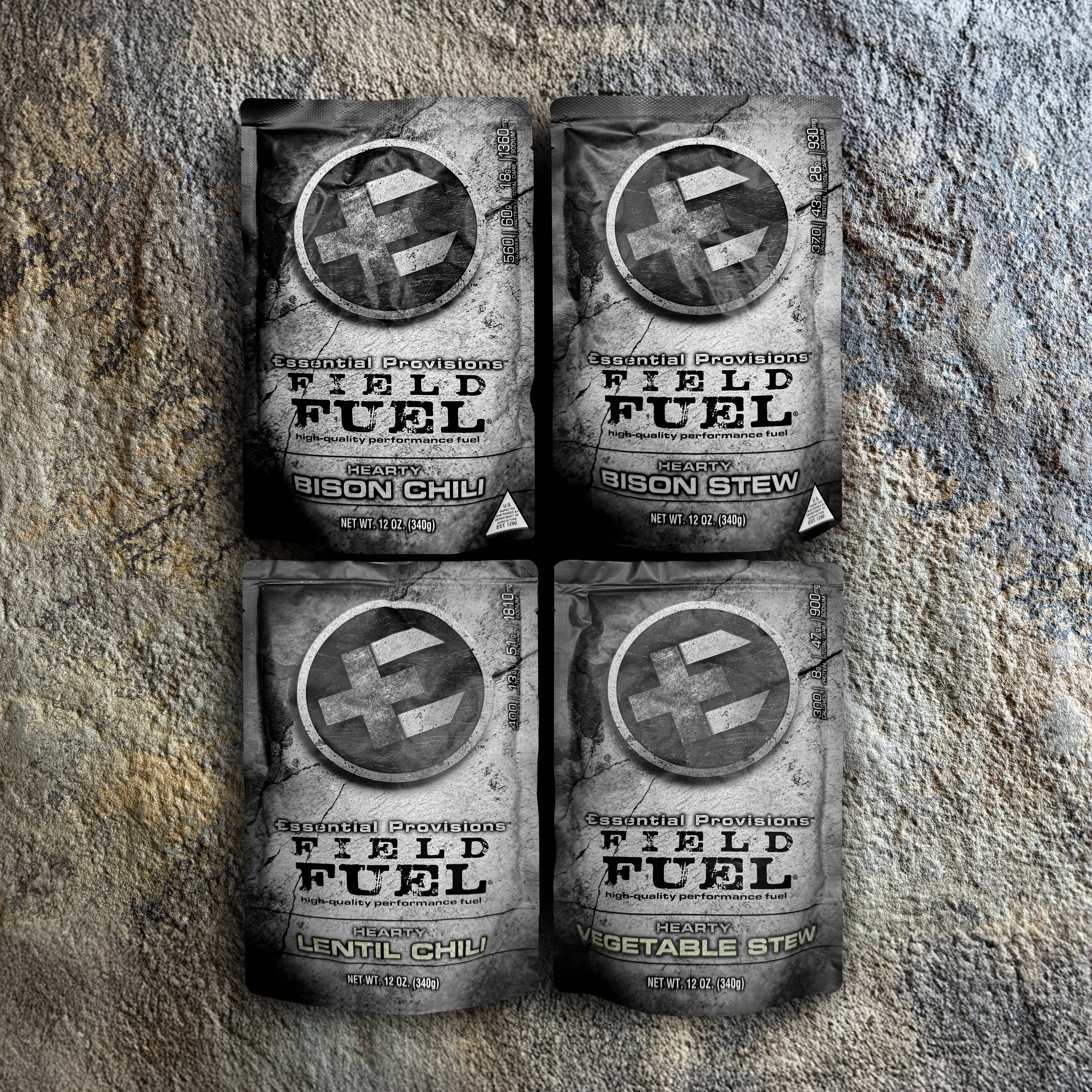 Experience the full range of Essential Provisions' chef-crafted, nutrient-dense meals ready-to-eat with our MRE Variety Pack. This 4-pack includes one 12 ounce package each of: